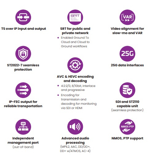 Az IP-csatlakozás lehetővé teszi a távoli helyre vagy felhőbe történő továbbítást további feldolgozás céljából, ugyanakkor a visszatérési útvonal dekódolására is képes.
